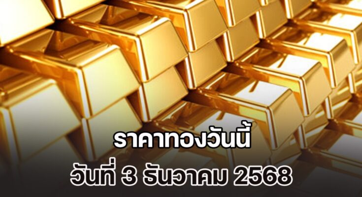 รายงานราคาทองวันนี้ประจำวันพุธที่ 3 ธันวาคม 2568 ประกาศครั้งที่ 1 (เปิดตลาด) เมื่อเวลา 09.01 น. ปรับเพิ่มขึ้น 200 บ.