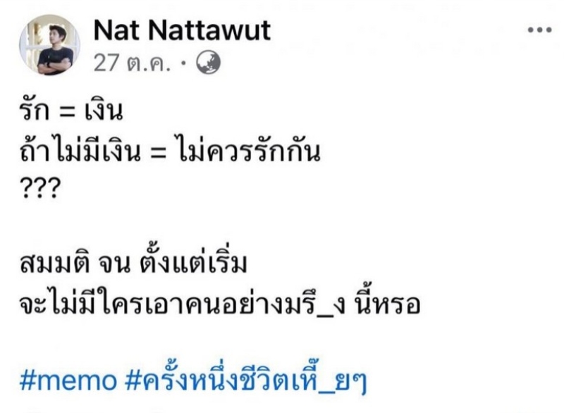 ล่าสุดในโลกออนไลน์มีการเเชร์โพสต์ของนัทปงที่ถูกโพสต์เมื่อช่วงเดือนตุลาคมที่ผ่านมา โดยโพสต์ดังกล่าวระบุว่า