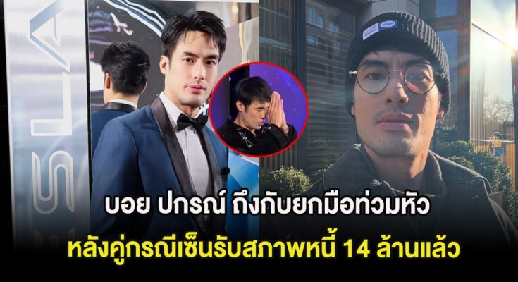 จากกรณีที่ก่อนหน้านี้ทางด้านพระเอกหนุ่มอย่าง บอย ปกรณ์ ได้ออกมาโพสต์ทวงหนี้กลางโซเชียล ล่าสุดเจ้าตัวได้ทำสัญญายอมรับสภาพหนี้ 14 ล้าน กับคู่กรณีเรียบร้อยแล้ว พร้อมเปิดใจเล่าว่า ก็ได้ติดต่อเจอกับบุคคลท่านนั้นเรียบร้อยแล้วครับ ได้มีการมาทำสัญญาตกลงรับสภาพหนี้ ในสัญญาก็จะระบุว่าพี่เขาจะทำการผ่อนชำระผมทั้งหมดกี่งวด งวดละเท่าไหร่ จนถึงเมื่อไหร่
