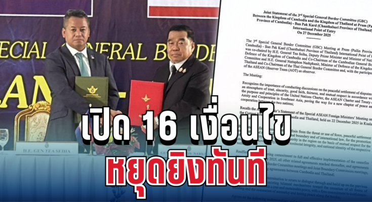 ด่วน! เปิด 16 เงื่อนไขหยุดยิงไทย-กัมพูชา มีผลทันที