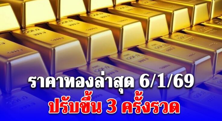 ราคาทองวันนี้ 6 มกราคม 2569 ประกาศครั้งที่ 1 (เปิดตลาด) เมื่อเวลา 09.04 น. ปรับตัวเพิ่มขึ้น 50 บาท สู่บริเวณ 65,750 บาท ล่าสุดปรับขึ้นอีก 3 ครั้ง รวมแล้วปรับขึ้น 200 บาท ส่งผลให้ราคาทองล่าสุดอยู่ที่