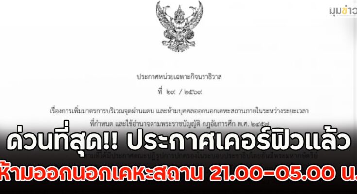 2. ห้ามบุคคลออกนอกเคหะสถานภายในระหว่างระยะเวลา 21.00 – 05.00 น. ในพื้นที่จังหวัดนราธิวาส กรณีมีเหตุจำเป็นเร่งด่วนต้องของขอนุญาตเจ้าหน้าที่ฝ่ายทหาร ตำรวจ กำนัน ผู้ใหญ่บ้าน หรือ เจ้าหน้าที่ฝ่ายปกครองในพื้นที่