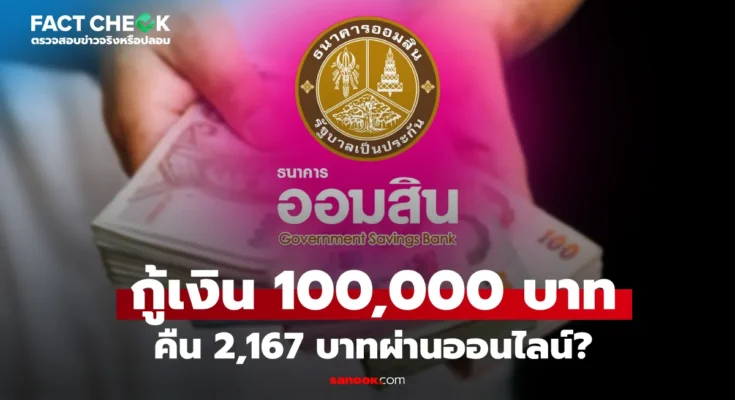 เช็กข่าวชัวร์ : กู้เงินออมสิน 100,000 บาท คืน 2,167 บาท ผ่านออนไลน์ ที่แท้เป็นแบบนี้นี่เอง