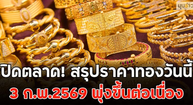 ราคาทองคำประจำวันที่ 3 ก.พ.2569 ผันผวนต่อเนื่อง ดีดแรง 2,450 บาท เปรียบเทียบกับราคาสุดท้ายของวันที่ 2 ก.พ.ที่ผ่านมา โดยราคาทองรูปพรรณขยับมาอยู่ที่บาทละ 74,400.00 บาท อ้างอิงข้อมูลล่าสุดจาก สมาคมค้าทองคำ ที่เผยแพร่ผ่านทางเว็บไซต์ เมื่อเวลา 17:13 น.ปรับครั้งสุดท้าย ครั้งที่ 63