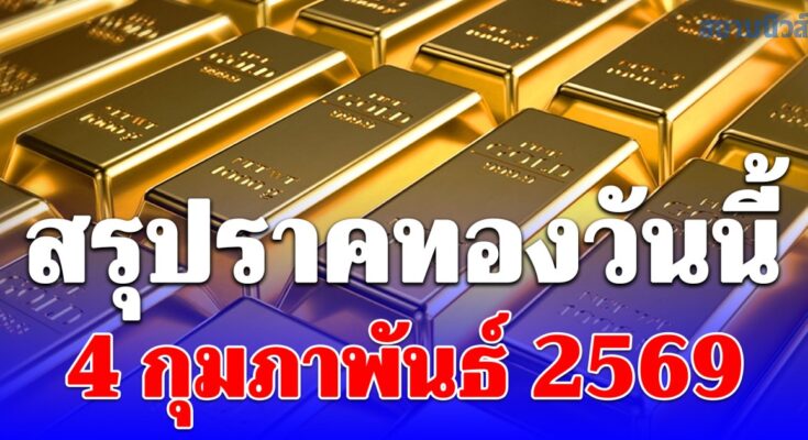 สรุปราคาทองคำวันนี้ ประจำวันพุธ ที่ 4 กุมภาพันธ์ 2569 ปิดตลาดราคาเพิ่มขึ้น 2,200 บาท ตลอดทั้งวันปรับ ราคา 31 ครั้ง ส่งผลให้ราคาทองคำล่าสุดอยู่ที่