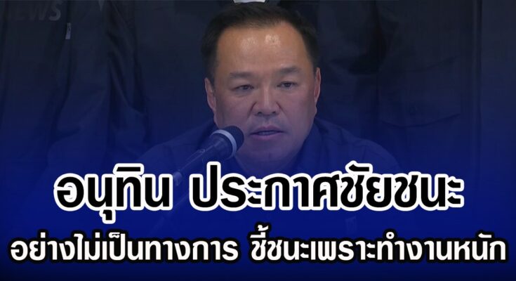 นายอนุทิน กล่าวด้วยว่า ชัยชนะของพรรคภูมิใจไทยในวันนี้คือชัยชนะของประชาชนชาวไทยทุกคน ไม่ว่าจะได้ลงคะแนนให้กับพรรคภูมิใจไทยหรือไม่ได้ลงคะแนนให้กับพรรคภูมิใจไทย ในวันนี้ถือว่าประชาชนชาวไทยทุกคนคือคนที่พรรคภูมิใจไทยจะต้องทำงานรับใช้อย่างสุดกำลังความสามารถ