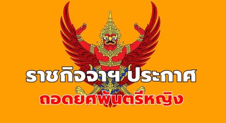 ราชกิจจาฯ ประกาศสั่งฟ้าผ่า ถอดยศพันตรีหญิง เรียกคืนเครื่องราชอิสริยาภรณ์
