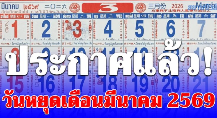 ใกล้เข้าสู่เดือนมีนาคม 2569 กันแล้ว หลายคนเริ่มมองหาวันลา วันหยุด วันหยุดยาวไปพักผ่อนช่วงต้นปี วันนี้เราจะพามาดูว่า วันหยุดเดือนมีนาคม 2569 มีวันไหนบ้าง