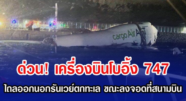 เพจ Hflight โพสต์สภาพเครื่องบิน ไถลออกนอกรันเวย์ ตกทะเลที่ฮ่องกง มีผู้เสียชีวิตด้วยว่า