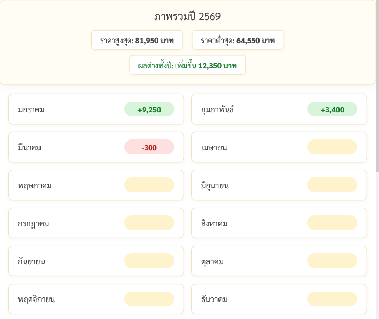 โดยมีสถิติการปรับราคาทองขึ้น-ลงในปี 2569 ดังนี้