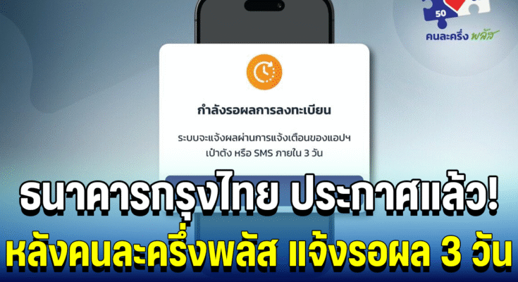 ธนาคารกรุงไทย ประกาศแล้ว! หลังคนละครึ่งพลัส แจ้งรอผล 3 วัน