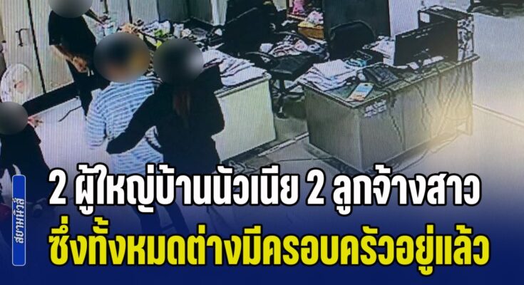 ฉาวสนั่นเมืองนครนายก! แฉคลิป 2 ผู้ใหญ่บ้านนัวเนีย 2 ลูกจ้างสาว ในที่ทำงาน ซึ่งทั้งหมดต่างมีครอบครัวอยู่แล้ว
