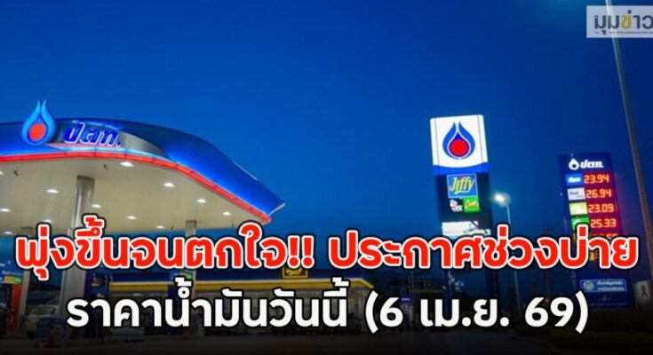 พุ่งขึ้นจนตกใจ!! ประกาศช่วงบ่าย ราคาน้ำมันวันนี้ (6 เม.ย. 69)
