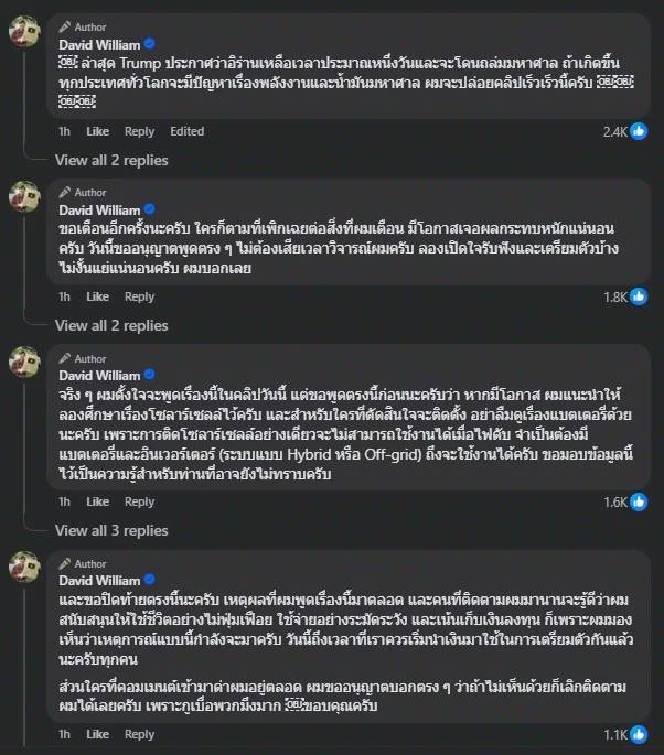 จริง ๆ ผมตั้งใจจะพูดเรื่องนี้ในคลิปวันนี้ แต่ขอพูดตรงนี้ก่อนนะครับว่า หากมีโอกาส ผมแนะนำให้ลองศึกษาเรื่องโซลาร์เซลล์ไว้ครับ และสำหรับใครที่ตัดสินใจจะติดตั้ง อย่าลืมดูเรื่องแบตเตอรี่ด้วยนะครับ เพราะการติดโซลาร์เซลล์อย่างเดียวจะไม่สามารถใช้งานได้เมื่อไฟดับ จำเป็นต้องมีแบตเตอรี่และอินเวอร์เตอร์ (ระบบแบบ Hybrid หรือ Off-grid) ถึงจะใช้งานได้ครับ ขอมอบข้อมูลนี้ไว้เป็นความรู้สำหรับท่านที่อาจยังไม่ทราบครับ