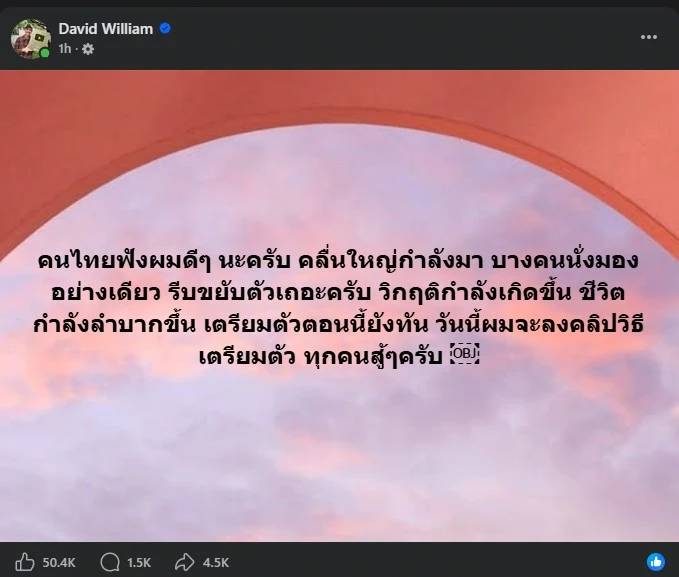 “ครูเดวิด” ครูสอนภาษาชื่อดัง ได้ออกมาโพสต์ข้อความผ่านเฟซบุ๊ก David William เตือนถึงคนไทยทุกคน ระบุว่า