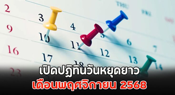 เปิดปฏิทินวันหยุดยาว เดือนพฤศจิกายน 2568