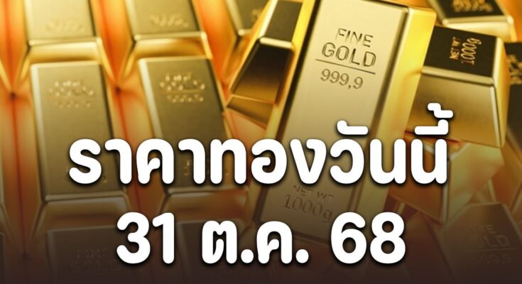 ราคาทองวันนี้ 31 ตุลาคม 2568 โดยสมาคมค้าทองคำ ประกาศราคาทองครั้งที่ 1 (เปิดตลาด) เมื่อเวลา 09.05 น. ปรับลง 250 บาท ส่งผลให้ราคาทองล่าสุดเช้านี้อยู่ที่