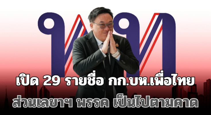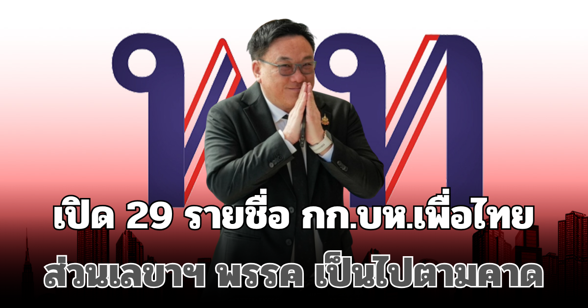 ล่าสุดมีรายงานว่า สำหรับรายชื่อคณะกรรมการบริหารพรรคเพื่อไทย จำนวน 29 คน ดังนี้